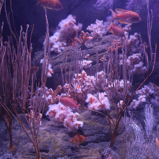 Majd ahogy haladunk előre, egyre nagyobb és nagyobb élőlényeket figyelhettünk meg. A legnagyobb medencében, ahol a nagytestű cápák, ráják és további élőlények voltak, éppen búvárok voltak a vízben és dolgoztak valamit. Meg is fordult a fejemben, hogy ilyen körülmények között még talán én is bemerészkednék a cápák közé. Hiába próbáltam már párszor nyaralások alkalmával a búvárkodást, nagyon ambivalens érzésem van azzal kapcsolatban. Egyszerre vonz és megrémít, az, hogy mennyire hatalmas méretekről és távolságokról beszélünk az óceánok esetében és tulajdonképpen minden nagytestű állat ott van ugyanabban a közegben, csak éppen nem tudni milyen messze. Nekünk embereknek pedig nincsenek olyan természetes támaszaink, a búvárfelszerelések nélkül, hogy könnyedén tájékozódjunk és közlekedjünk a vízben. Persze ez ugyanígy igaz a szárazföldön is, de ott a közeg sokkal nagyobb biztonságot nyújt, mint a vízben az oxigénpalack limitált tartalmától való függés.