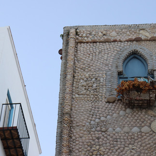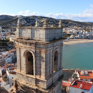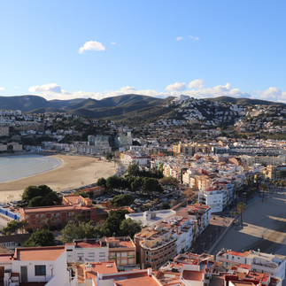 A következő és egyben utolsó utunk Peñiscola felé vezetett, ahol sötétedésig, 6-7 óráig kaptunk szabadidőt. Ez a város sokkal nagyobb, mint az előző, így oda kellett is egy fél nap bejárni. Először valamilyen ebéd után kutattunk, majd a friss pizzánkkal leültünk a tengerpartra piknikezni. Ezután a vár és az óváros felé vettük az irányt. A várba előre online meg lehet venni a jegyet (3 euró), így elkerülhetjük a sorban állást a jegypénztárnál. Az óváros hangulatát a többnyire fehérre festett többemeletes házak és a köztük lévő sikátorok, valamint a rengetek étterem és bolt határozta meg. Itt található egy olyan épület, amely az egyik fő látványosság, a tengeri kagylókkal kirakott ház. Hatalmas tömeg volt előtte, sőt sorban állas is, mert mindenki itt szeretett volna csoportos fényképet készíteni.